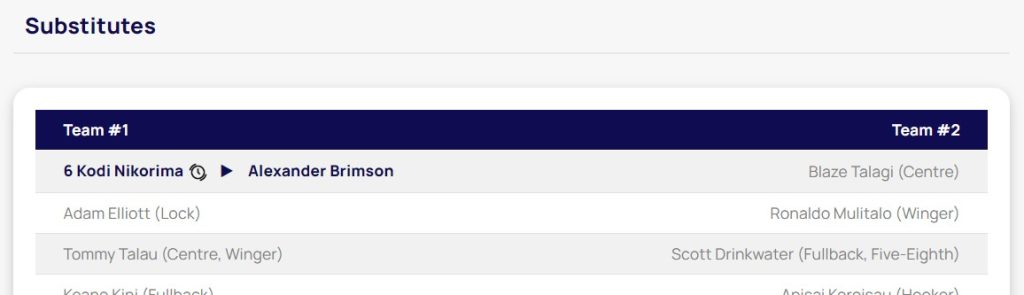 Prior to the start of each round of the competition, it is the fantasy team managers responsibility to select their ‘run on’ team of 17 players for the round, and to set the substitutes order from the remainder of their squad.